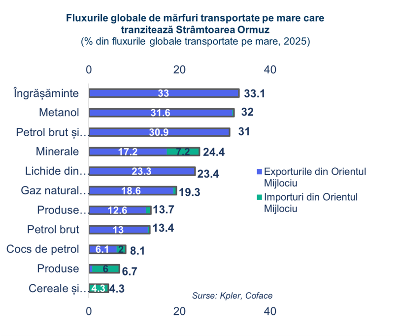 Simon Lacoume, economist la Coface, notează că amploarea șocului depinde de evoluția conflictului și de eventualele blocaje persistente în Strâmtoarea Ormuz.