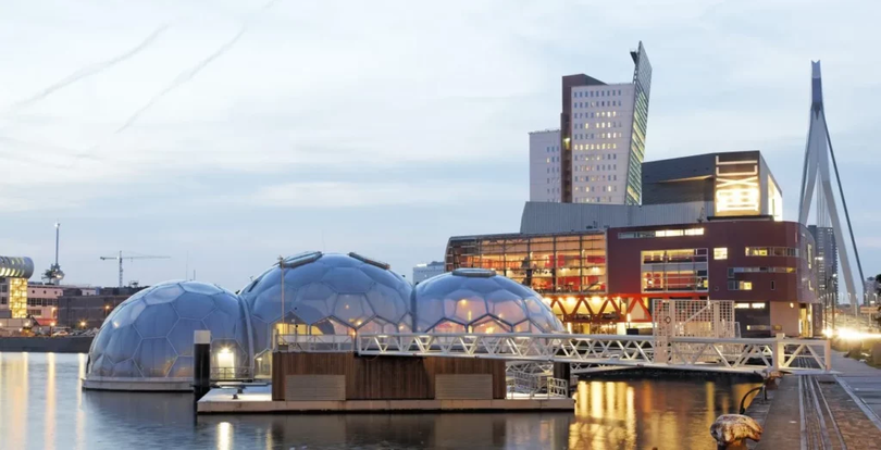 Rotterdam, oraș situat 90% sub nivelul mării și gazda celui mai mare port din Europa, găzduiește cea mai mare clădire de birouri plutitoare din lume, dar și o fermă plutitoare.