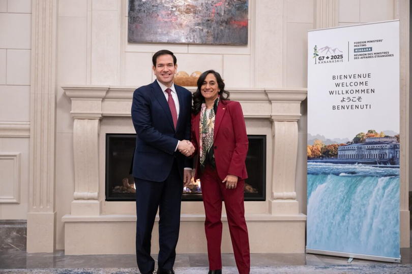 Reuniunea G7, care are loc în localitatea Niagara-on-the-Lake, la granița cu Statele Unite, este prima de acest fel în care ministra Anand se întânește cu secretarul de stat al SUA, Marco Rubio, de când președintele american Donald Trump a anulat brusc, pe 23 octombrie 2025, negocierile comerciale dintre cele două țări.