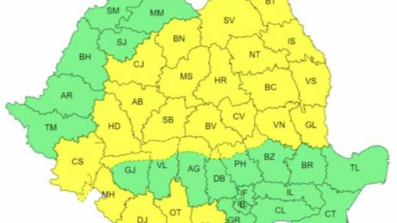 Prima avertizare anunță intensificări ale vântului cu viteze de 50-60 km/h în Banat, Crișana, Maramureș, Transilvania și vestul Olteniei. În zonele montane, la altitudini mari, rafalele vor depăși 70-80 km/h, iar viscolul va afecta în special Carpații Occidentali, Carpații Meridionali și nordul Carpaților Orientali. Totodată, vor fi precipitații mixte – ploi, lapoviță și ninsoare – în diverse zone ale țării, cu ninsori semnificative pe dealuri și la munte.