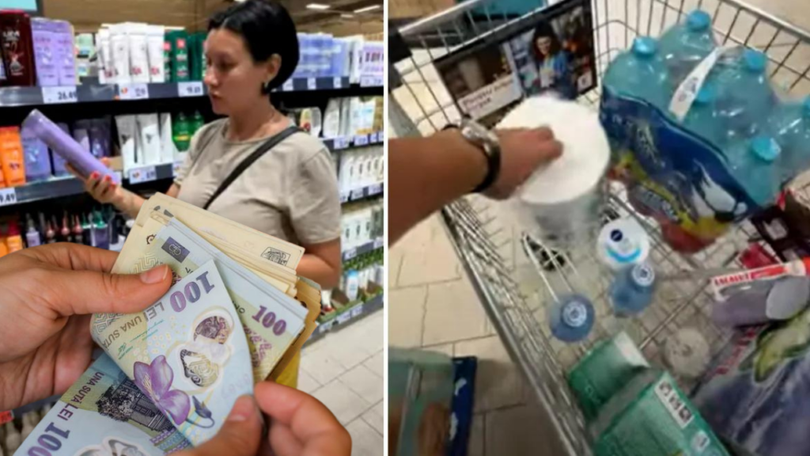Cei doi au cheltuit 707 lei pentru produse de bază precum detergent, apă plată, șampon, vopsea de păr, lapte, șervețele, bere fără alcool, periuțe de dinți și bețișoare de urechi, sumă care i-a impresionat negativ, având în vedere cantitatea mică de produse achiziționate.