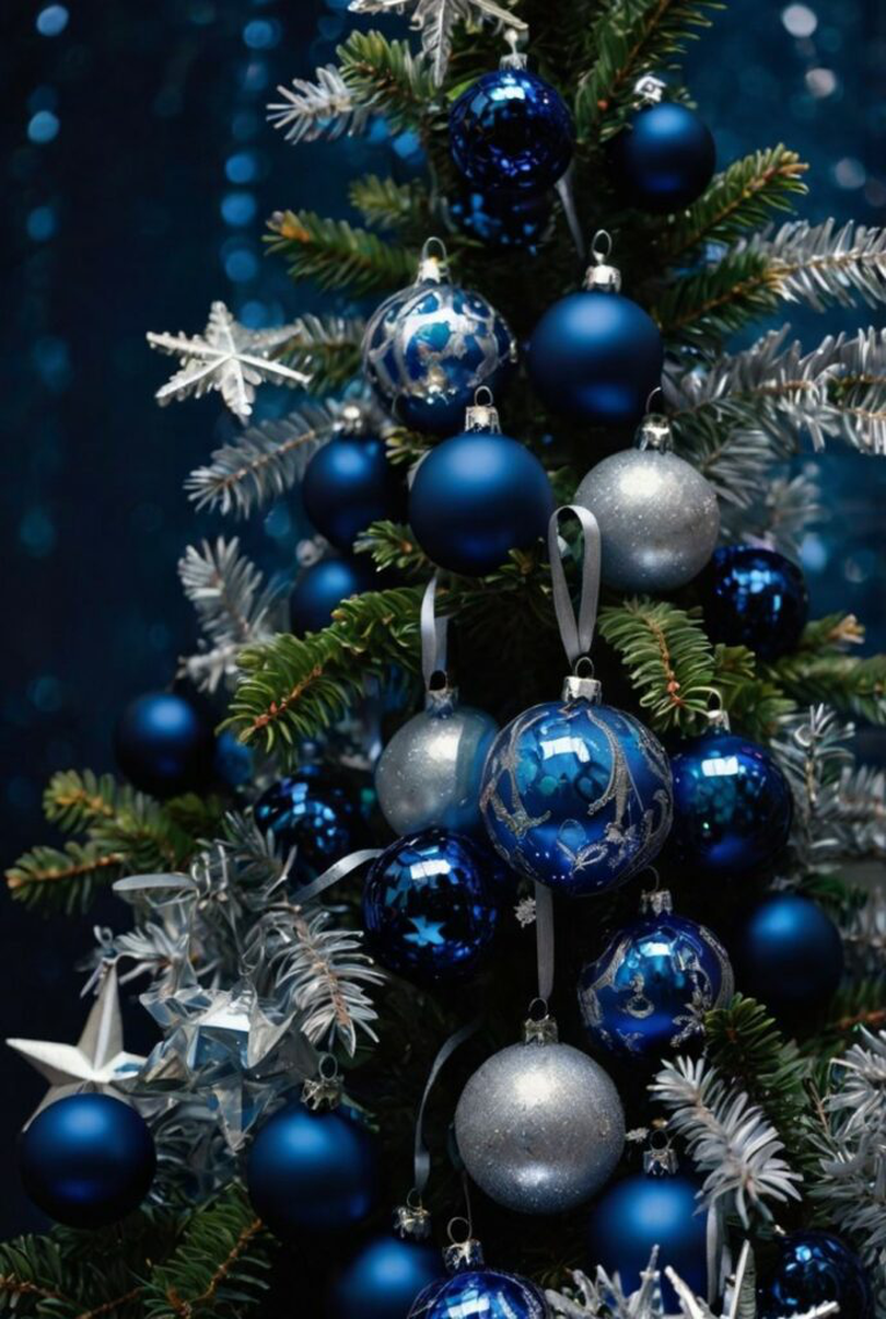 Această paletă este perfectă pentru cei care preferă un decor modern. Globurile albastre, combinate cu beteală argintie și lumini albe, creează un efect de gheață. Completează decorul cu accesorii în formă de fulgi de zăpadă sau steluțe.