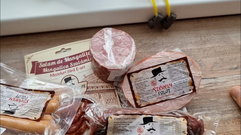 „22 de lei suta de grame, atenţie, de ruladă maramureşeană! Avem aici muşchi de mangaliţă, muşchi haiducesc tot 200 de lei kilogramul. Am luat nişte salam secuiesc, e foarte bun şi e ceva mai ieftin: 12 lei pe suta de grame “, a spus acesta.