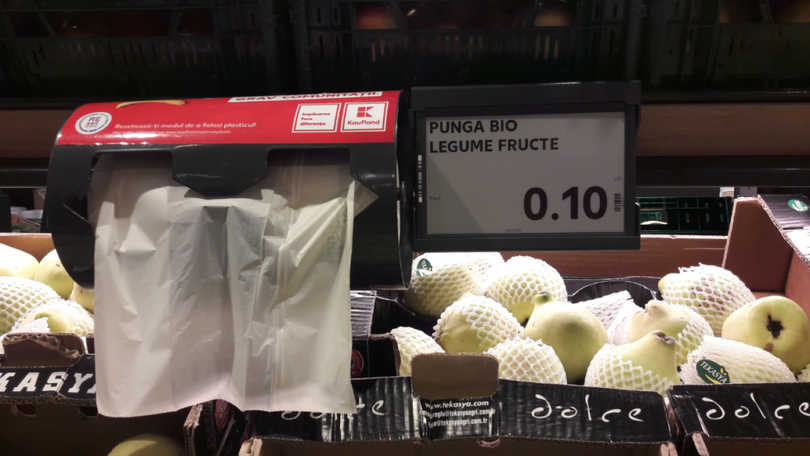 Românii care fac cumpărături în supermarketurile mari au observat că trebuie să plătească pentru pungile din plastic în care își ambalează fructele și legumele. Această practică, în vigoare încă din 2009, presupune achitarea unei taxe denumite „eco-taxă” pentru fiecare pungă de plastic utilizată, conform legislației de mediu, potrivit bugetul.ro.
