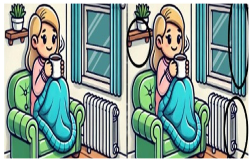 Dacă nici așa nu ați reușit să indentificați cele trei diferențe, vă spunem noi care sunt. Prima se regăsește la nivelul perdelei. Cea de-a doua diferență se găsește la nivelul caloriferului. Iar cea de-a treia este prezentă la nivelul poliței pe care stă planta.
