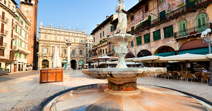Piazza Erbe, piața centrală a orașului, rămâne un punct de întâlnire pentru localnici și turiști. Clădirile pastelate, fântânile și porumbeii creează o atmosferă picturală, iar piețarii vând produse de sezon direct în piață, menținând tradiția încă din perioada romană.
