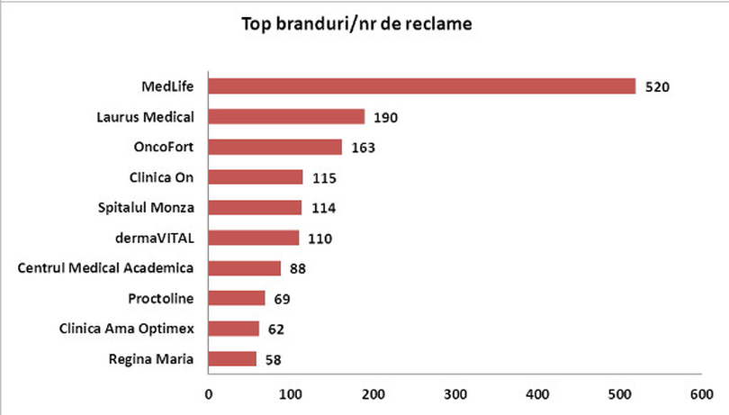 reclame), Clinica Ama Optimex (62 reclame) si Regina Maria (58