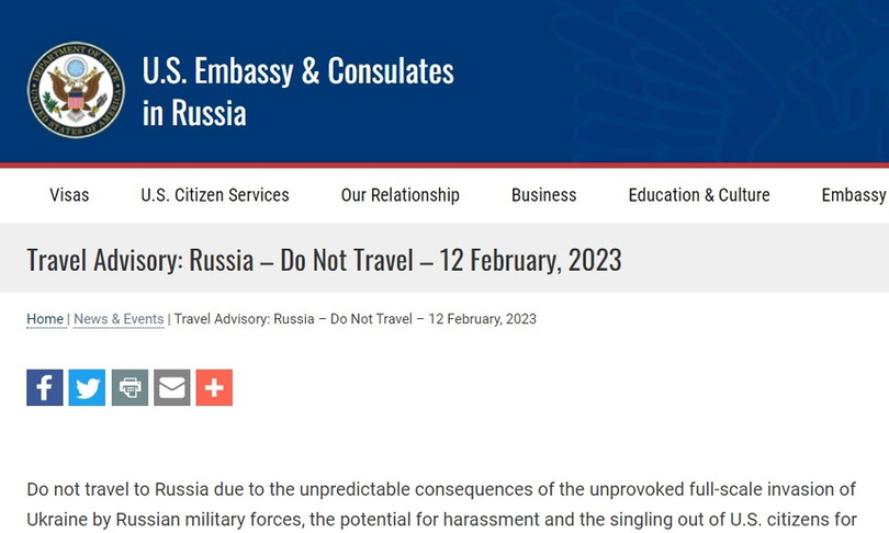 De altfel, SUA şi-a avertizat în repetate rânduri cetăţenii săi să părăsească Rusia, ultima oară în septembrie 2022, după ce preşedintele Vladimir Putin a ordonat o mobilizare parţială. „Serviciile de securitate ruse au arestat cetăţeni americani în baza unor acuzaţii false, au ţintit cetăţeni americani din Rusia pentru a-i deţine şi hărţui, le-au refuzat un tratament corect şi transparent şi i-au condamnat în procese secrete sau fără a prezenta dovezi credibile”, avertizează Ambasada SUA, după ce, în ianuarie, Serviciul Federal rus de Securitate (FSB) anunţase că a deschis un dosar penal împotriva unui cetăţean al SUA sub suspiciunea de spionaj.