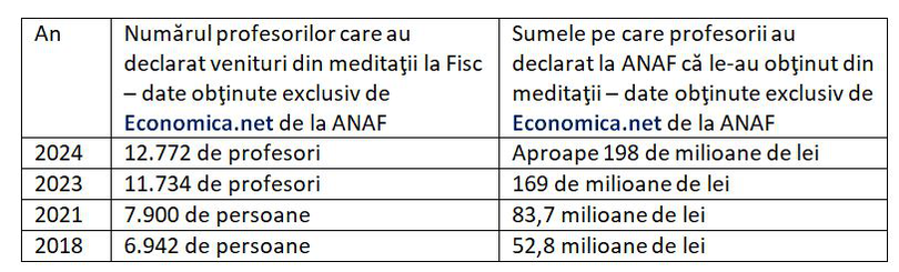 Meditațiile sunt o afacere de succes pentru multe cadre didactice. O dovedesc cifrele veniturilor raportate la ANAF de profesorii care se ocupă cu așa ceva.