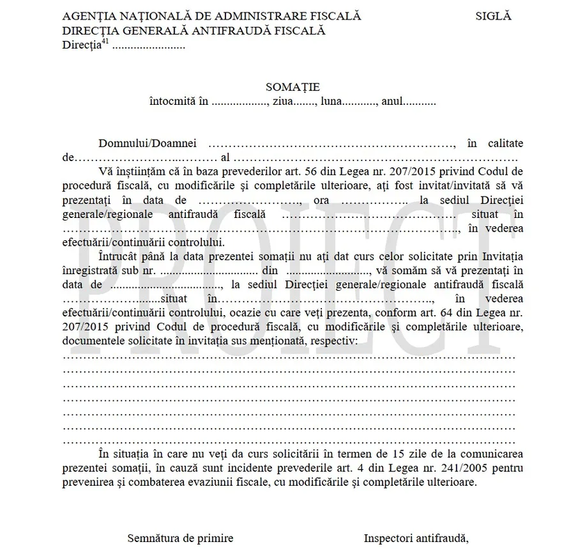 Inițial, inspectorii de la antifraudă trimiteau un document numit „invitație” către contribuabili, care avea scopul de a le solicita documentele relevante în scopul controlului fiscal.