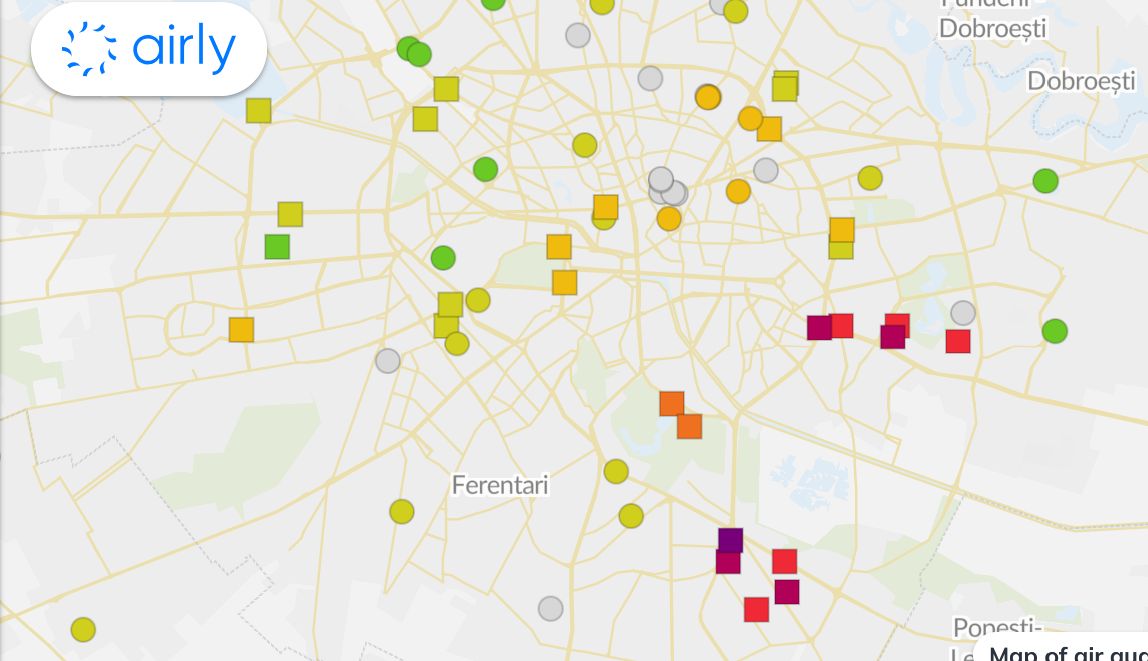 Datele Airly arată că mai mulți senzori au înregistrat niveluri de poluare extrem de ridicate, considerate periculoase pentru sănătate.
