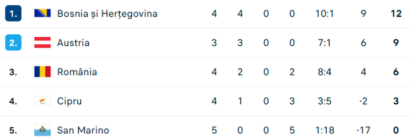 16:00 – Bosnia și Herțegovina – San Marino 1-0