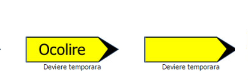 Un alt indicator mai puțin cunoscut este săgeata de culoare galbenă. Acesta se montează pe segmentele de drum unde sunt executate lucrări de reablitare a drumurilor publice și semnalează necesitatea devierii temporare a circulației.
