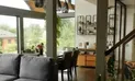 La interior, casa este mobilată în stil industrial, mai rece. Livingul este foarte spațios, camerele sunt foarte luminoase, un perete întreg fiind din cărămidă în culori închise.