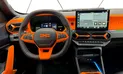 La interior, s-a optat pentru centuri de siguranță portocalii, care se asortează perfect cu colantul aplicat pe caroserie. De asemenea, cabina beneficiază de lumină ambientală, iar scaunele au fost retapițate cu piele, detaliile portocalii fiind integrate armonios în design.
