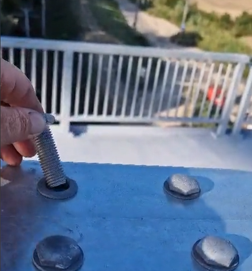 Imagini incredibile de pe podul peste Dunăre de la Brăila. Șuruburile ar fi fost puse doar de formă sau cel puțin asta reiese dintr-0 filmare postată de un român care a mers pe pod și a început să tragă de șuruburi.