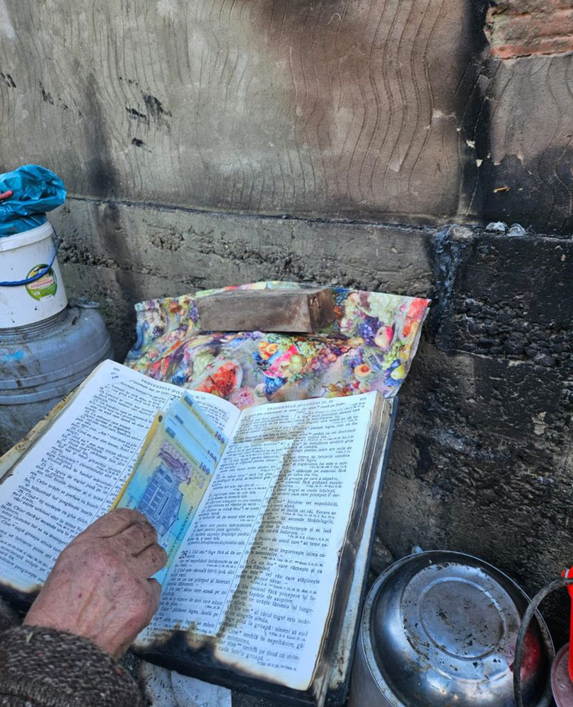 Casa din Suceava a fost complet distrusă, însă Biblia, în care proprietara pusese suma de 13.000 de lei, a rămas intactă.