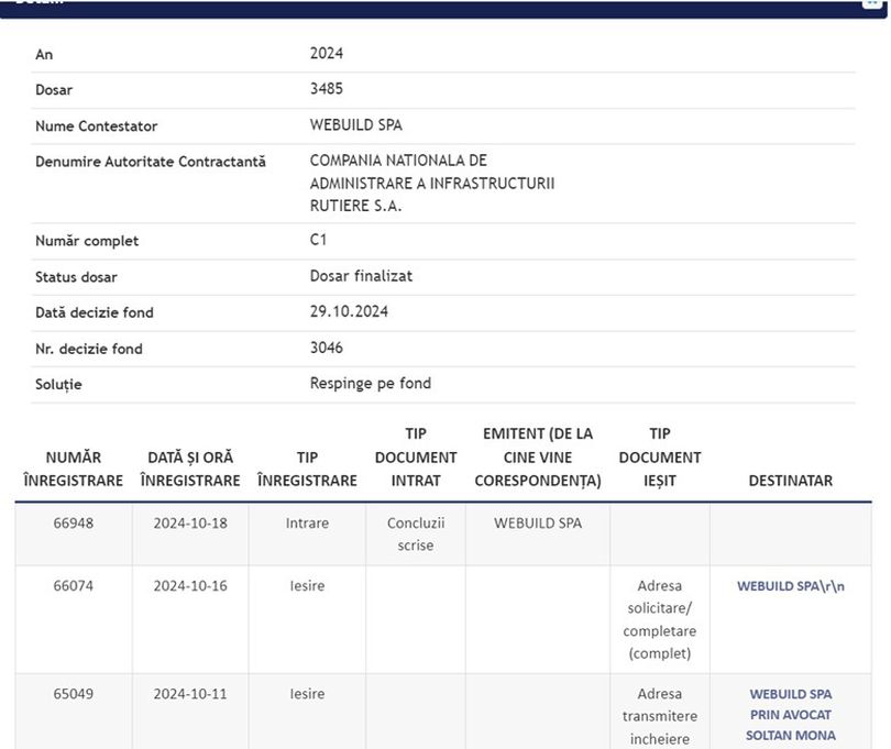 Decizia CNSC prin care s-a respins contestația WeBuild pentru Lotul 2 Pașcani – Suceava: