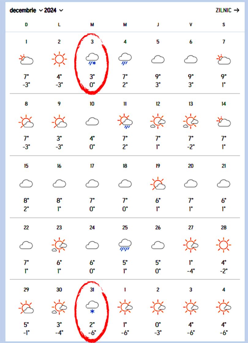 30 decembrie: Temperatura maximă va fi de 3 grade, iar cea minimă scade până la -4 grade;