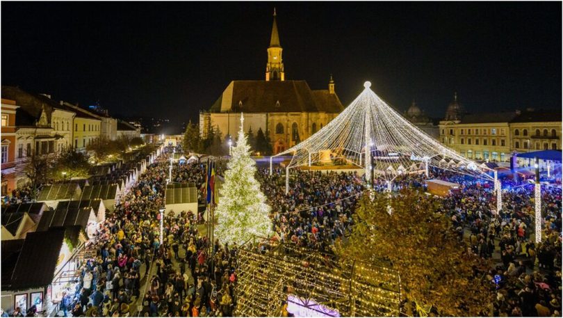Târgul de Crăciun din Piața Unirii din Cluj s-a deschis de vineri, 22 noiembrie, iar zeci de turiști merg în fiecare seară să simtă atmosfera sărbătorilor și să se bucure de cortina de lumini din centru. În același timp, în acest an s-a deschis încă un târg, pe strada Kogălniceanu, fiind amplasate și instalații cu lumini, sub egida Lights On, notează Actual de Cluj.