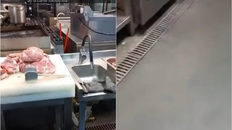 „Uitaţi cum arată carnea! Trebuie să folosiţi mănuşi, halate, nu aşa”, spune unul dintre inspectorii care au ajuns la faţa locului.