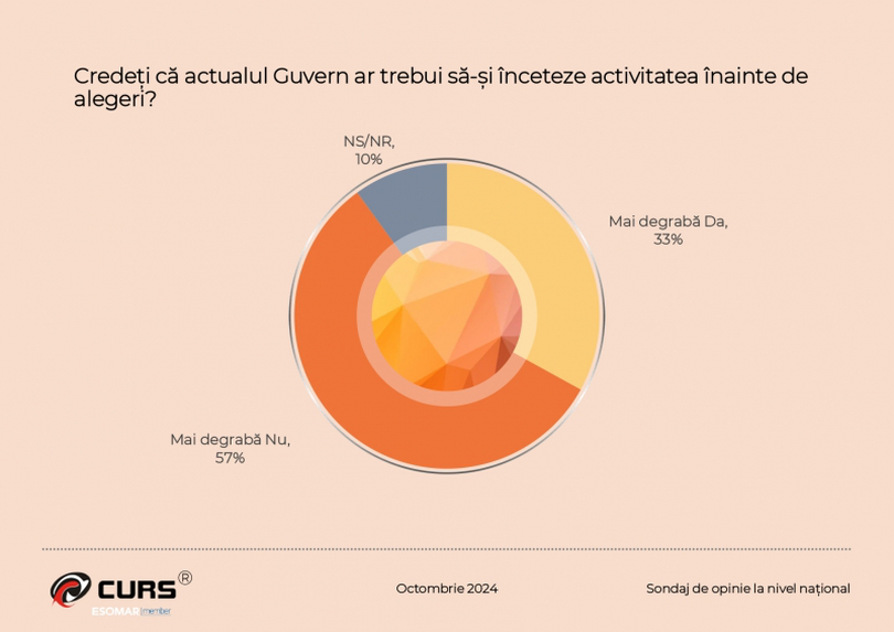 La întrebarea „Credeți că actualul Guvern ar trebui să-și înceteze activitatea înainte de alegeri?”, românii răspund în felul următor: